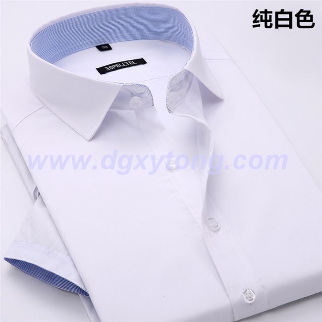 东莞短袖衬衫厂服厂家定做 男士商务短袖 夏款免烫 纯色衬衫 工装衬衣 职业修身